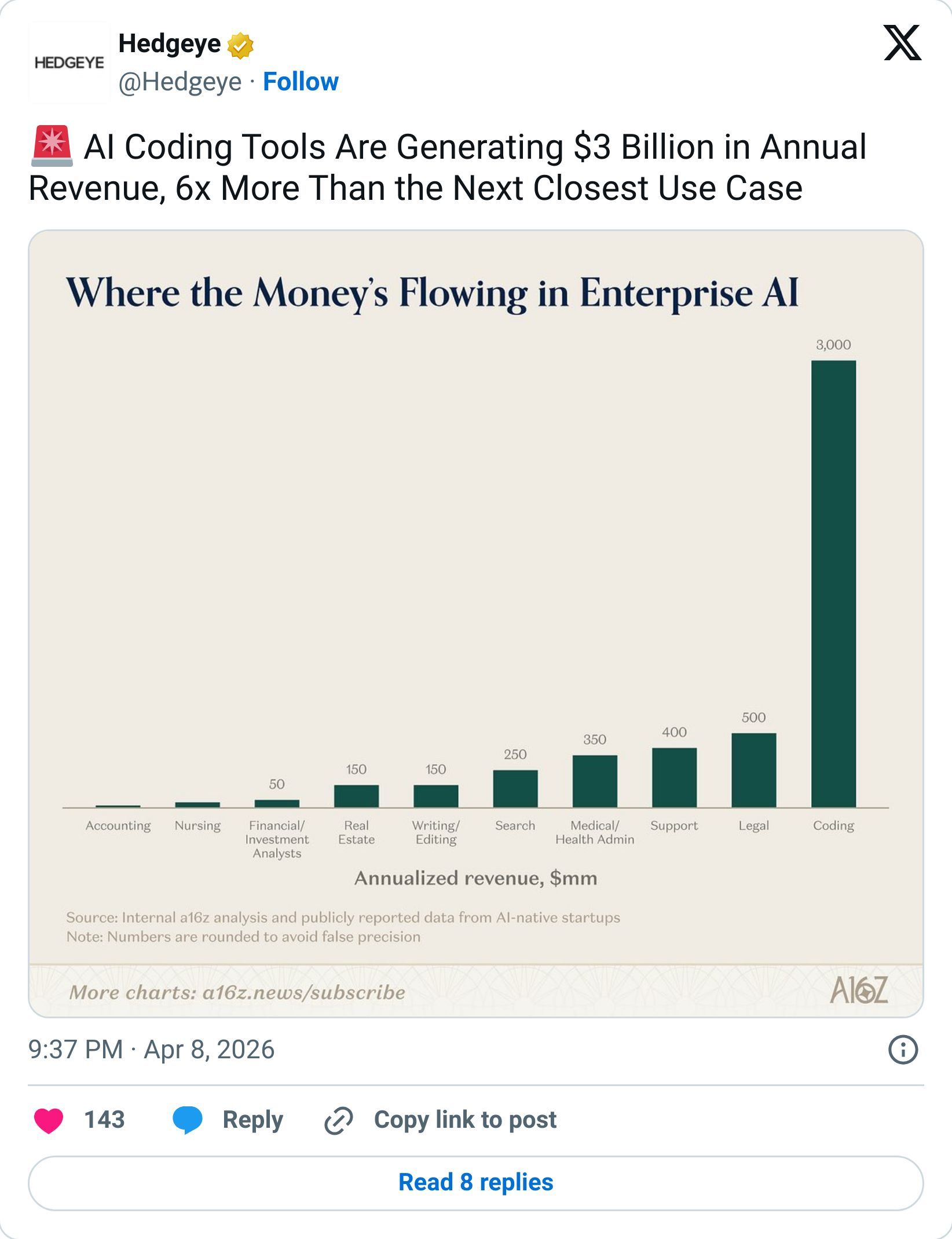 + The “smart” money (prediction markets) has Scottie Scheffler in the lead to win The Masters at 13% odds. (Polymarket)