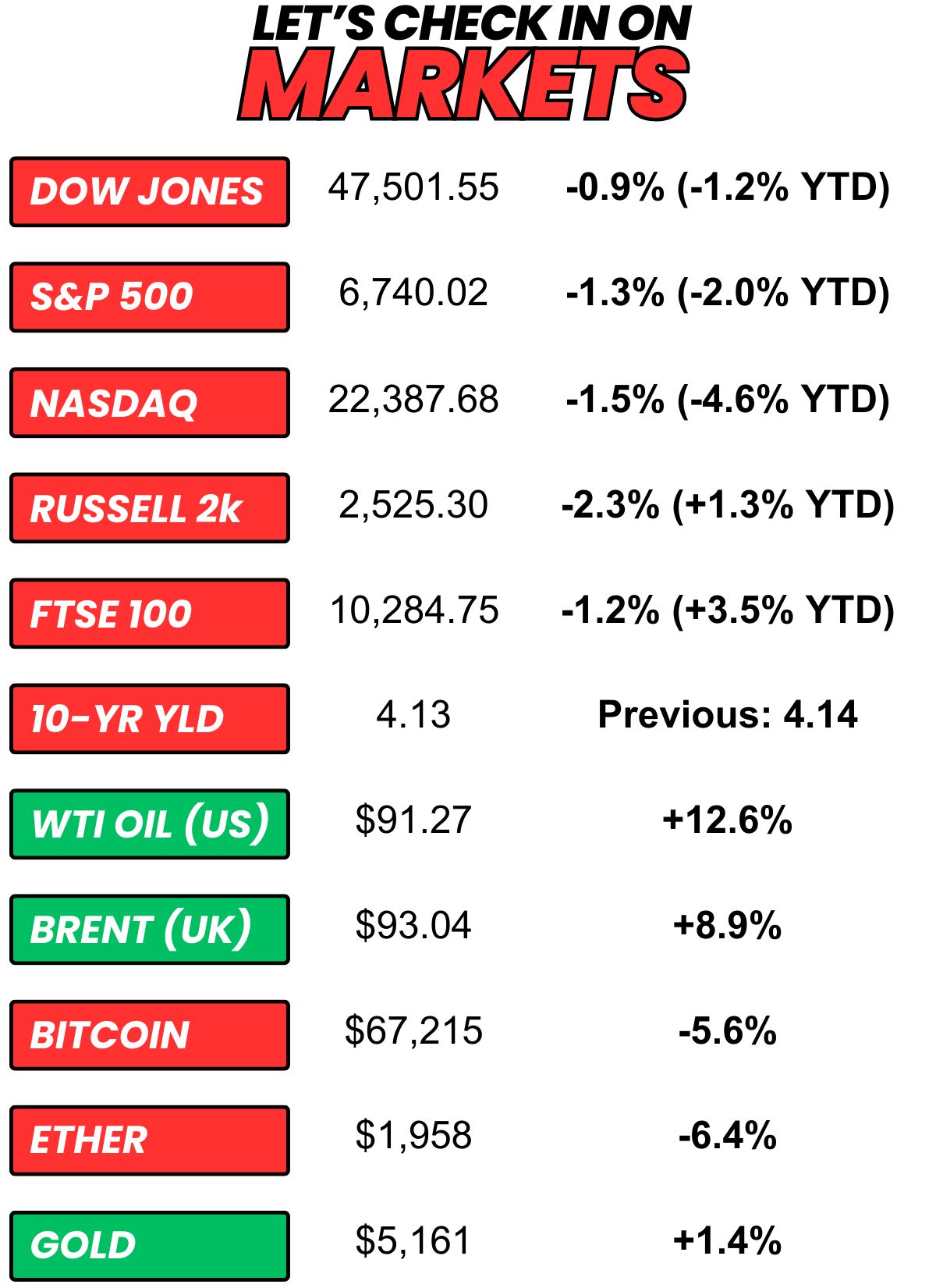+ US stocks “closed down on Friday amid a sudden setback in the U.S. labor market and a 12% spike in U.S. oil prices due to the escalating conflict in the Middle East.” (Reuters)