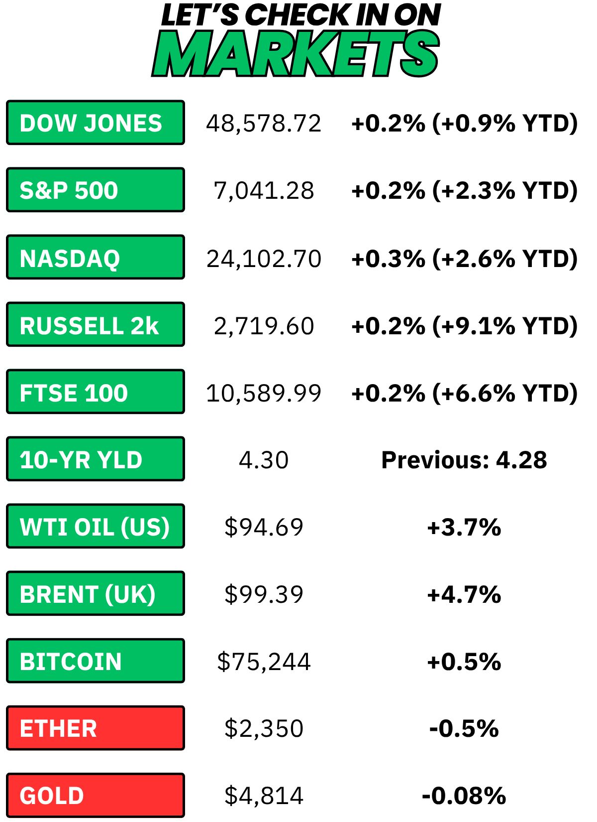 + US stocks “inched up Thursday evening after President Donald Trump said Israel and Lebanon had agreed to a 10-day ceasefire.” (Yahoo! Finance)