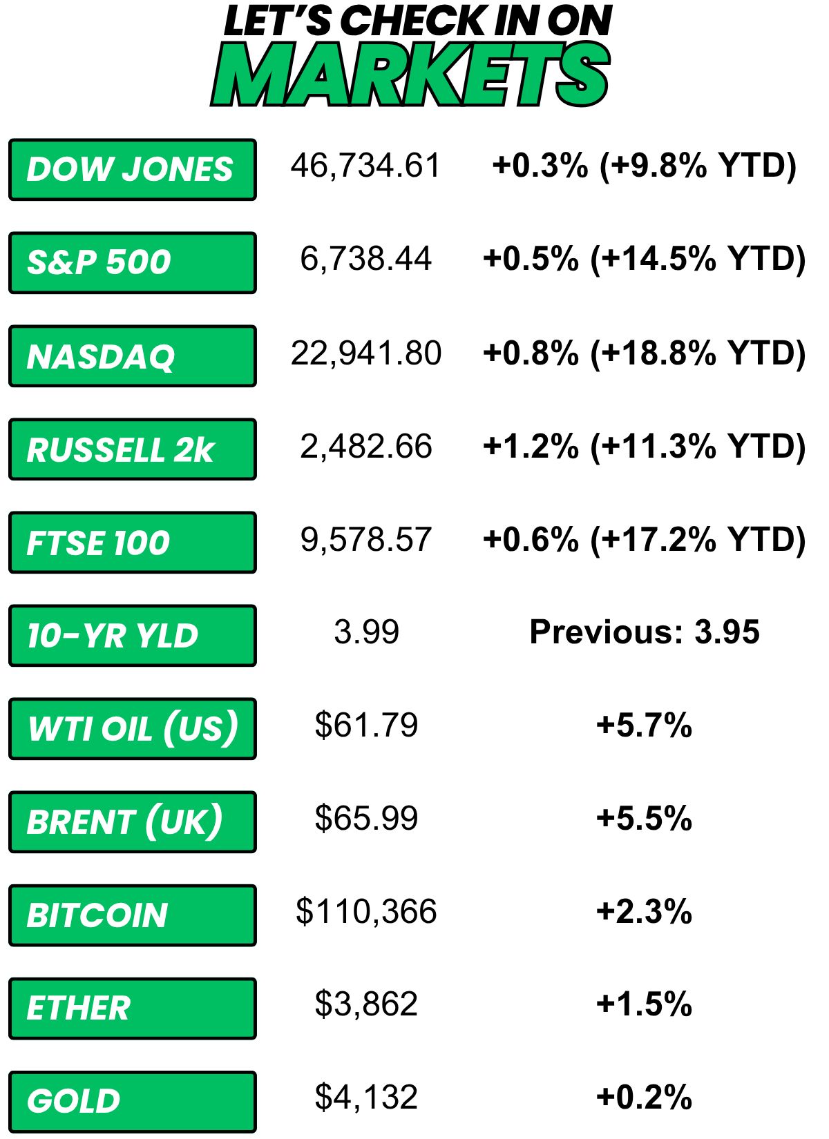 + Oil “surged around 5% to a two-week high on Thursday after the U.S. imposed sanctions on major Russian suppliers Rosneft and Lukoil over Moscow’s war in Ukraine, prompting energy firms in China and India to consider cutting Russian imports.” (Reuters)